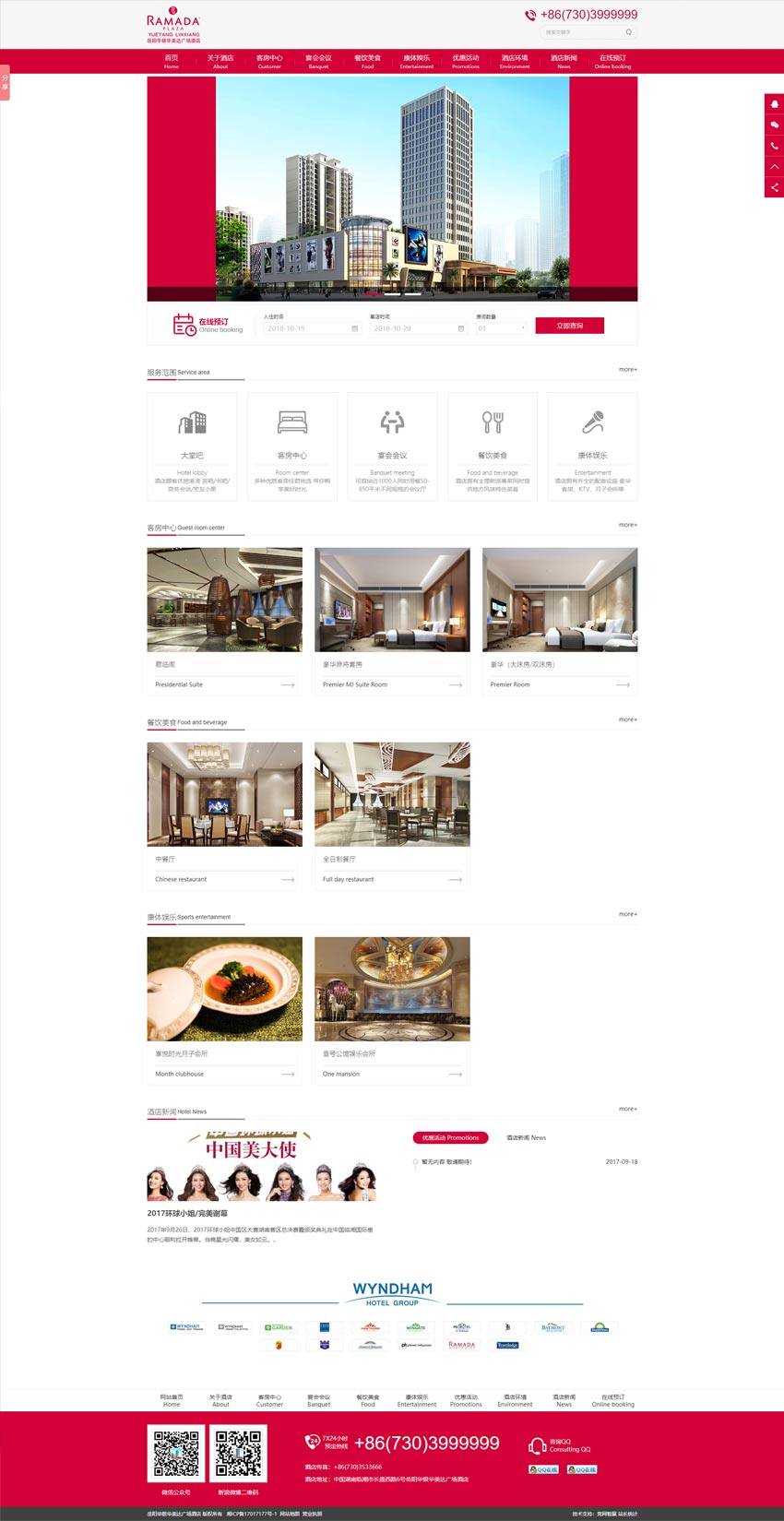 推薦理由:白紅配色優(yōu)雅大氣。全面的呈現(xiàn)酒店各方面的信息。客房預(yù)訂部分采用對(duì)接第三方系統(tǒng)的方式實(shí)現(xiàn),不可多得的簡版的酒店官網(wǎng)呈現(xiàn)方案。