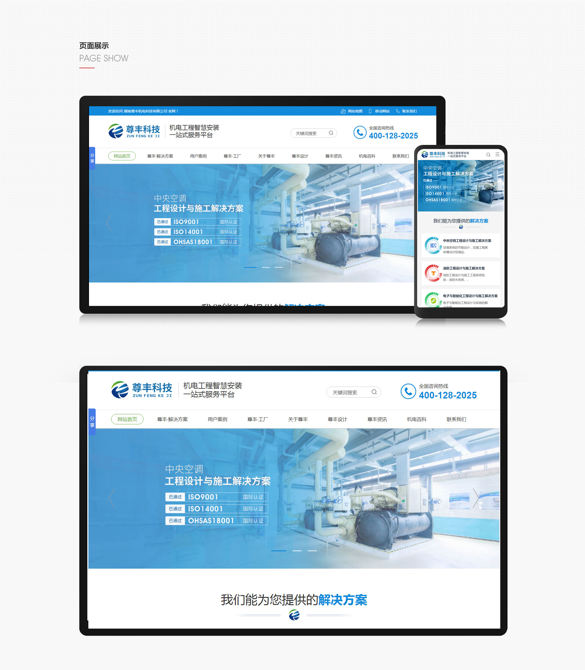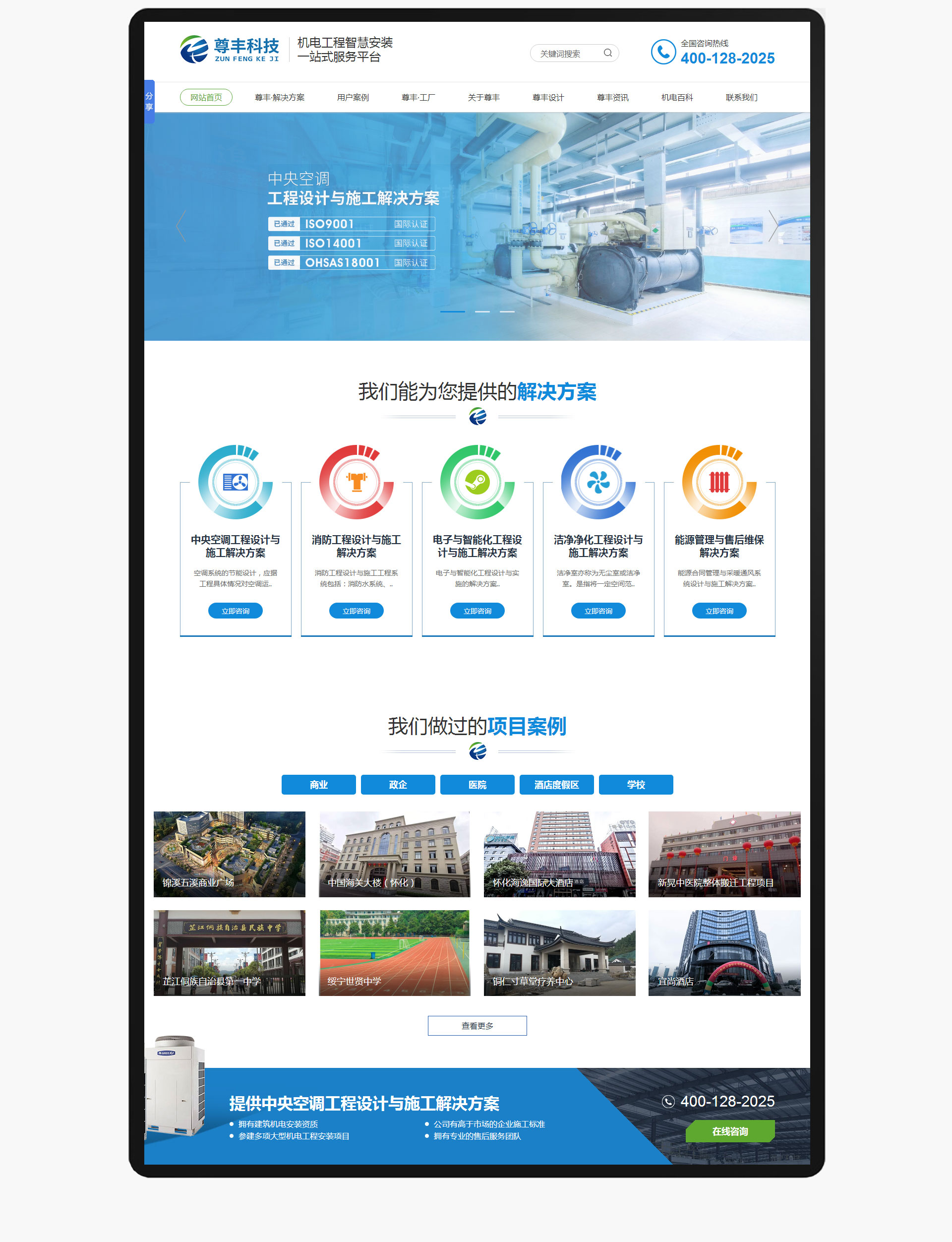 定位上,采用了營銷型的布局,旨在通過合理的營銷邏輯分布,層層遞進,讓訪客了解尊豐機電實力與核心解決方案,產生咨詢的動機,為客戶帶來線索。