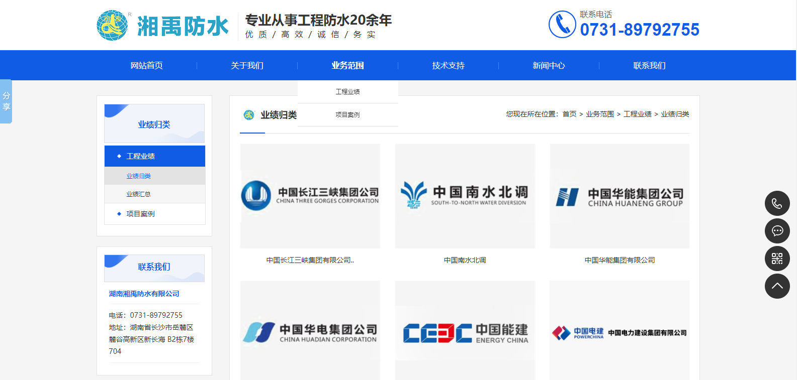 網站主欄目:網站首頁、關于我們、業務范圍、技術支持、新聞中心、聯系我們