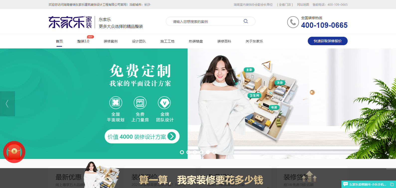 網(wǎng)站主欄目:首頁、整裝3.0、裝修案例、設(shè)計(jì)團(tuán)隊(duì)、施工工地、熱裝樓盤、裝修百科、關(guān)于東家樂