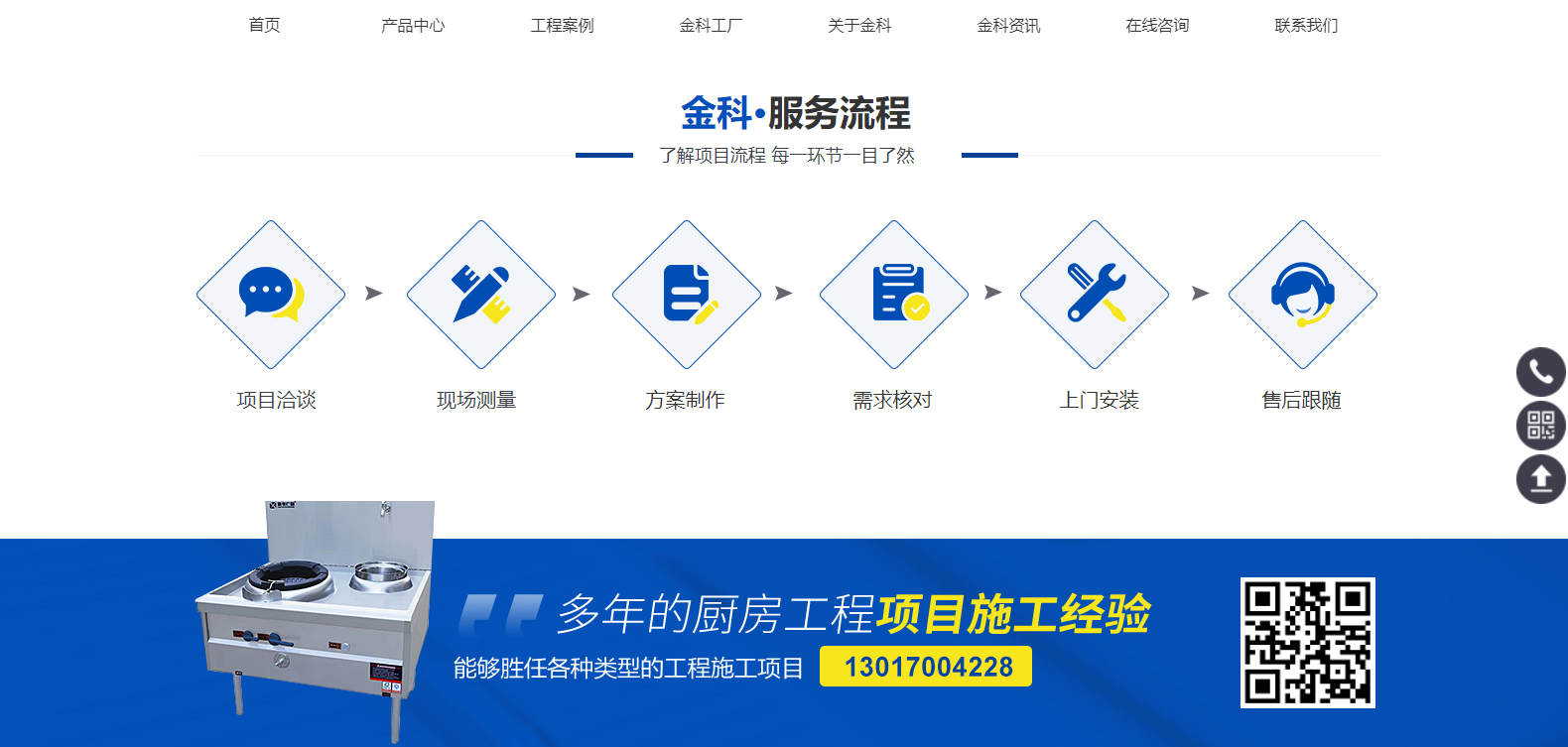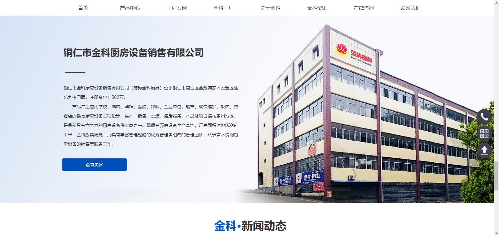網站主欄目:首頁、產品中心、工程案例、金科工廠、關于金科、金科資訊、在線咨詢、聯(lián)系我們