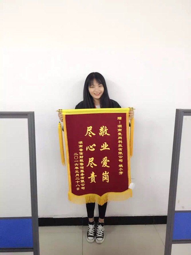 這幾天春雨連綿,天氣陰沉,但在競網還是發生了些許興奮的事情,比如說平臺服務顧問姚小芳收到了一份來自北京的神秘禮物——湖南普信財稅咨詢服務有限公司贈送的錦旗。你可能會問“客戶不是湖南的嗎,怎么會從北京寄這不是糊弄嗎?”小芳解釋說“客戶確實是株洲的,日前在北京出差,聽說我把網站打理的不錯很感動,百忙抽空專程寄送錦旗”。