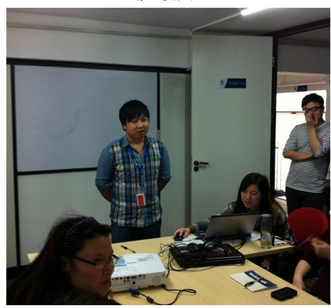 定制組美女前端工程師正在對自己作品的定位,設計思路、理念和顏色的搭配,網站的功能及特效進行講解。