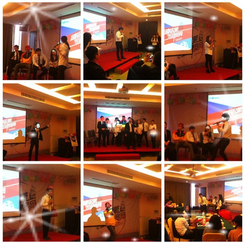 中午十分,伙伴們都穿著帥氣、靚麗的職業(yè)正裝來到云夢賓館參加競網(wǎng)周年慶活動。1點30分,周年慶準(zhǔn)時開始了,在主持人的帶動下,伙伴們玩起了擊鼓傳花的游戲,大家都玩得不亦樂乎,每個人臉上都帶著喜悅的笑容!臺上站著的是我們游戲結(jié)束后的幸運者們,主持人在為他們頒發(fā)獎品呢!
