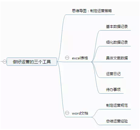 做運(yùn)營(yíng)么,就是一個(gè)明確目標(biāo)、拆解目標(biāo)、快速執(zhí)行、驗(yàn)證結(jié)論、應(yīng)用結(jié)論的過程。思維導(dǎo)圖解決的是明確目標(biāo)、拆解目標(biāo)的過程,excel表格解決的是快速執(zhí)行、驗(yàn)證結(jié)論的過程,驗(yàn)證結(jié)論就需要靠第三件大殺器——word文檔了。