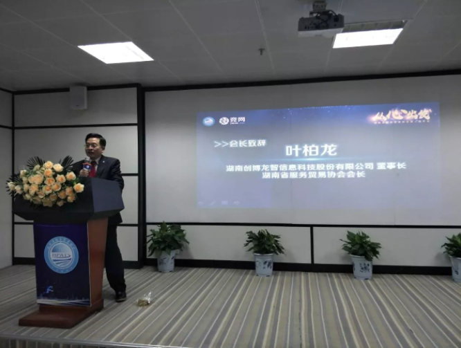 【省服務貿易協會會長、湖南創博龍智信息科技股份有限公司董事長葉柏龍發言】