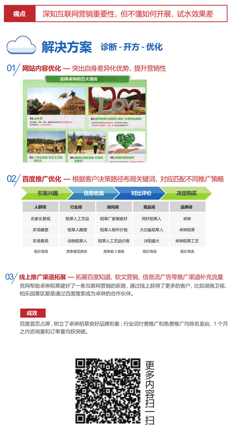 陳卓琳,一位敢想敢做的“80后”。稻草,在她的眼里成了“寶貝”。她依托“互聯網+”的大趨勢,在專家的指導下運用網絡營銷模式,艱難打拼,成功地將稻草這一“下里巴人”變成了“陽春白雪”。她的創業經歷,不僅詮釋了稻草變“黃金”的傳奇,也體現了網絡營銷的巨大魅力和價值。