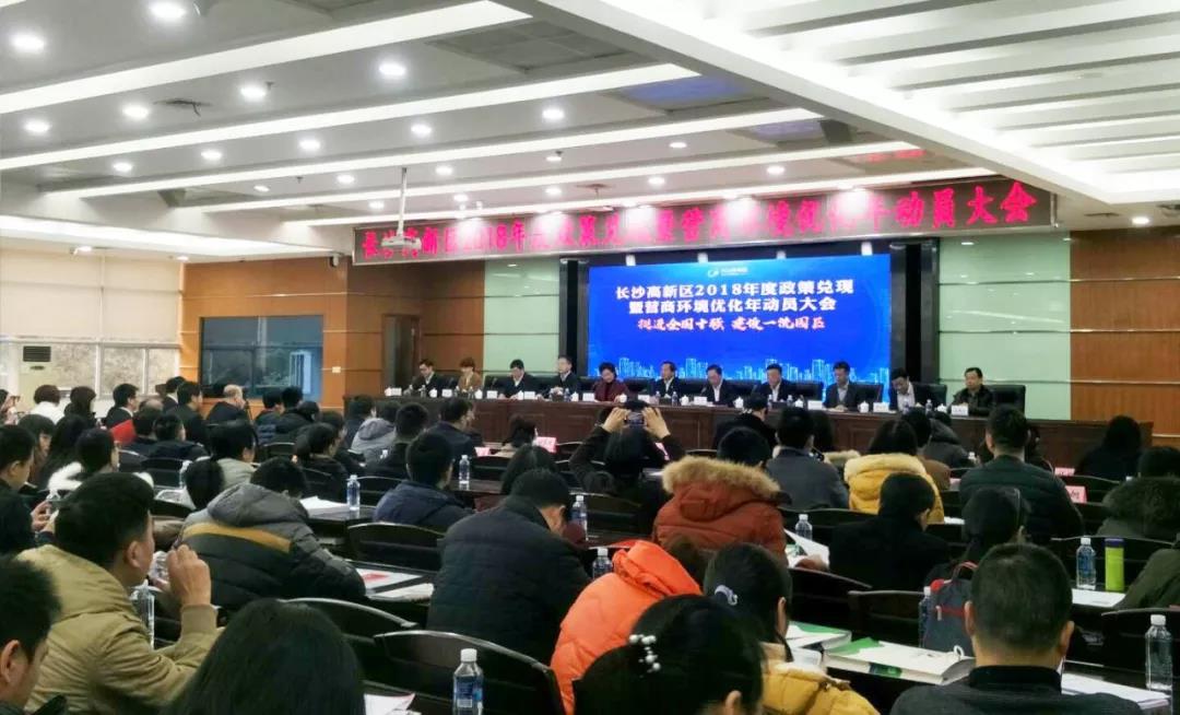 為總結(jié)發(fā)展成績,部署全年工作,通過不斷營造公平透明的市場環(huán)境,推動園區(qū)投資環(huán)境、服務(wù)環(huán)境、人文環(huán)境等全面優(yōu)化,促進(jìn)廣大企業(yè)銳意進(jìn)取、創(chuàng)新經(jīng)營、轉(zhuǎn)型發(fā)展,助推園區(qū)經(jīng)濟(jì)又好又快發(fā)展,2019年2月22日,由長沙高新區(qū)管理委員會召開的長沙高新區(qū)2018年度政策兌現(xiàn)暨營商環(huán)境優(yōu)化年動員大會順利舉行。長沙高新區(qū)黨工委書記周慶年、管委會主任譚勇,相關(guān)領(lǐng)導(dǎo)及企業(yè)家參加會議。