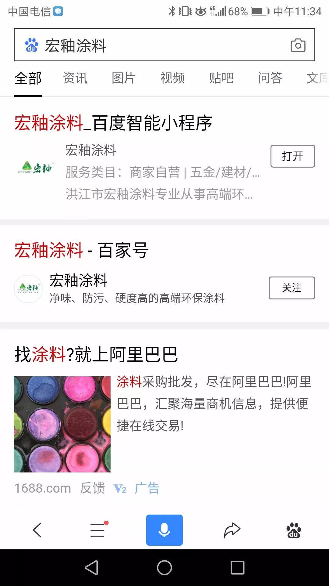 “宏釉涂料”百度智能小程序移動(dòng)搜索排名第一。↓↓
