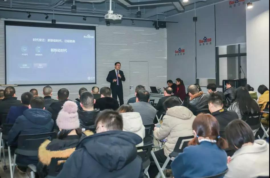 本次會議由百度競網資深講師楊俊擔任主講,他圍繞百度智能小程序的價值、生態模式、核心能力等多個方面展開了論述,通過一系列數據引出百度智能小程序的發展趨勢及產品優勢,讓到會的各位嘉賓及企業家朋友充分了解了百度智能小程序的紅利價值。