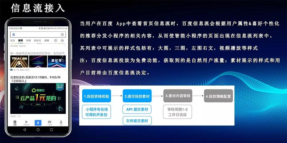 其開放性體現在:首先,開發者可以將自己在其他平臺開發的小程序接入百度智能小程序,進而讓這個智能小程序無縫運行在百度系App以及外部App(嗶哩嗶哩、58同城等)上,實現一端開發,多端可運行;其次,百度還將開放全域千億流量扶持開發者,幫助他們快速沉淀精準用戶。