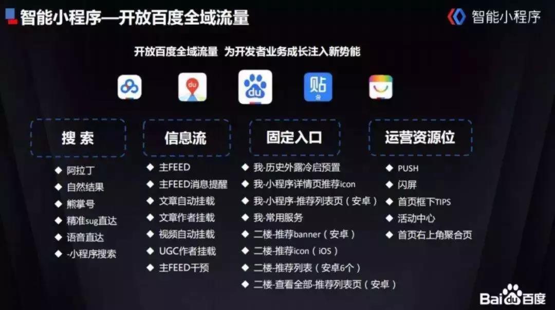 百度這一年以來開放了包括首頁下拉、搜索直達、搜索結果排序優待、信息流推薦、百家號掛載等多個入口,目的正是讓用戶可以快速觸達智能小程序,這種“新連接”對開發者的效果也是立竿見影,它已經讓先入局的很多開發者拿到了實實在在的收益。