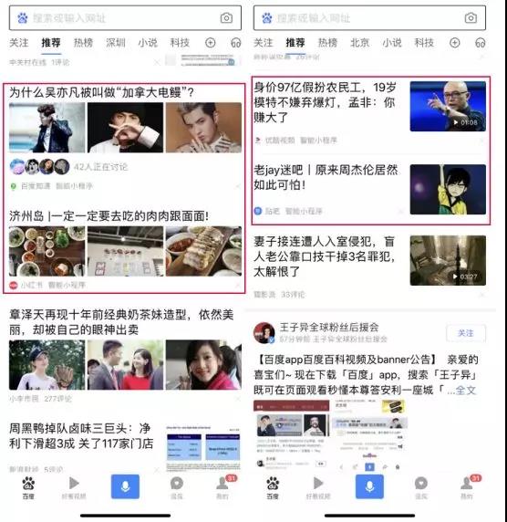 這種進(jìn)化首先體現(xiàn)在內(nèi)容的豐富度上。在百家號(hào)和智能小程序“雙生態(tài)”的加持下,百度App已經(jīng)擁有全網(wǎng)最豐富的內(nèi)容,而且很多過去因?yàn)榘鏅?quán)等問題無法在百度App上瀏覽的內(nèi)容,因?yàn)橛辛酥悄苄〕绦颍F(xiàn)在也可以直接在百度App上瀏覽,如愛奇藝、優(yōu)酷、小紅書、微博等等。